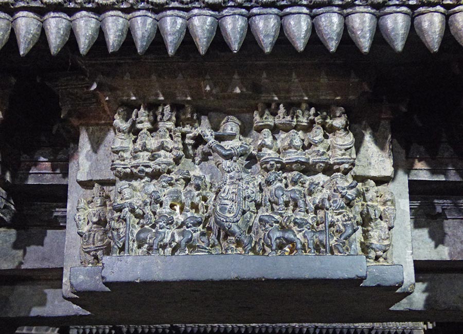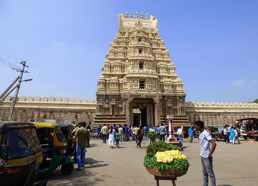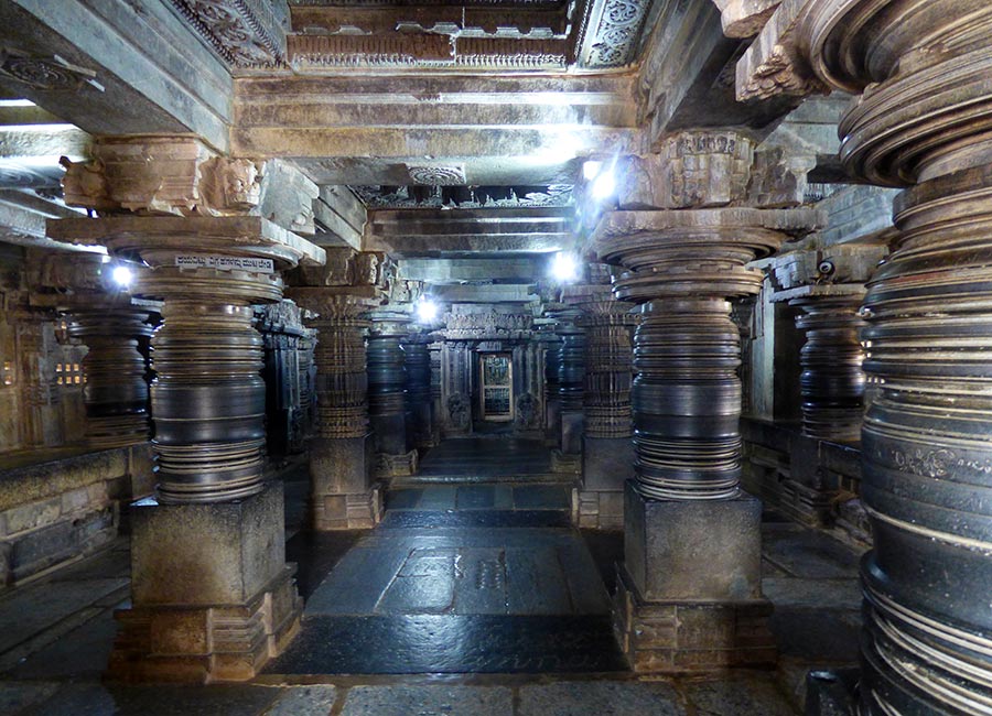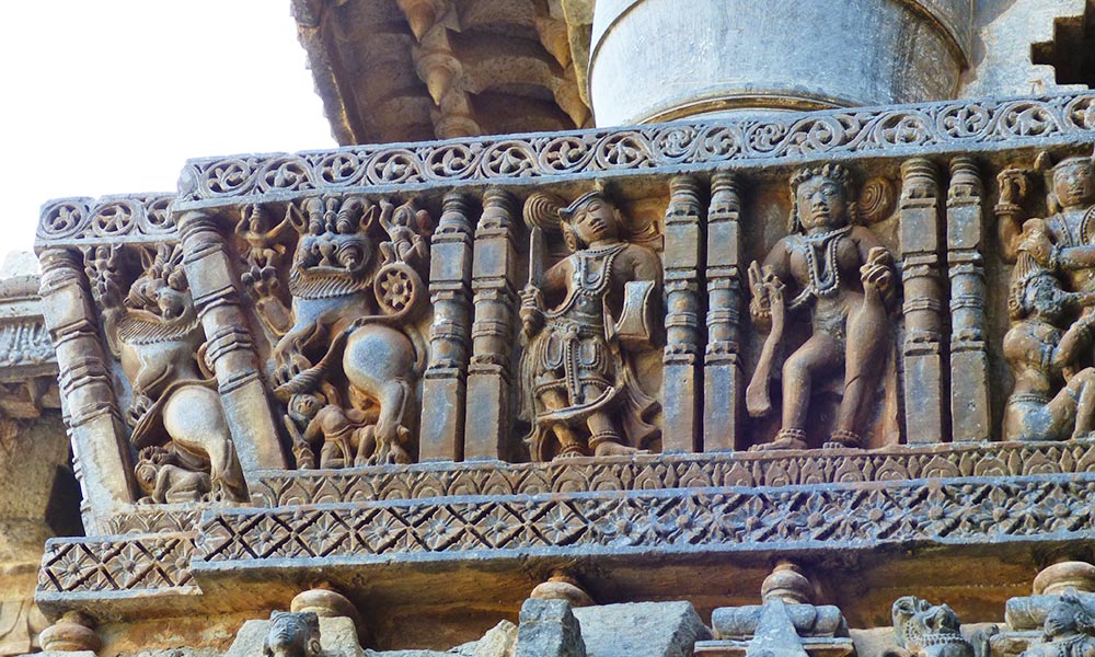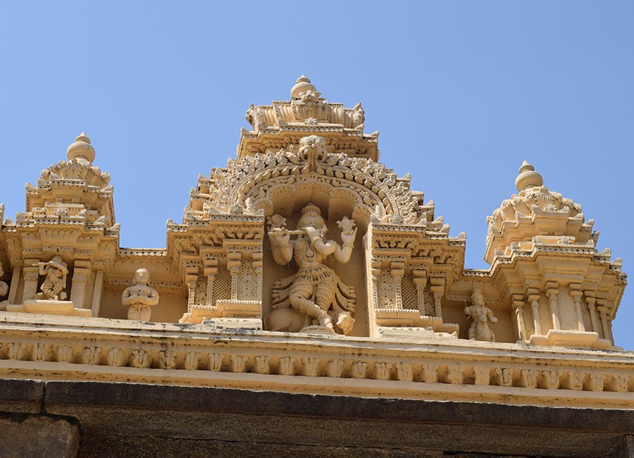 Weiter ging die Fahrt zum nächsten Höhepunkt, dem „Chennakesava-Tempel“ in Bellur. Er ist ebenfalls ein Hindu-Tempel aus dem 12. Jahrhundert und wurde 1117 von König Vishnuvardhana in Auftrag gegeben. Der Tempel über drei Generationen 103 Jahre lang erbaut und ist noch heute ein wichtiger Wallfahrtsort im Vaishnavismus. Diese Glaubensrichtung des Hinduismus, verehrt Vishnu als höchstes Allwesen, dem alle anderen Götter untergeordnet sind.