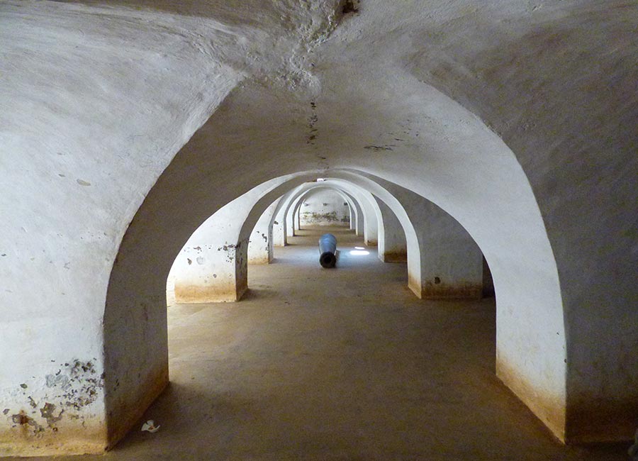 Einer von ihnen war Colonel Bailey, der hier 1782 starb. An den Wänden ragen Steinbefestigungen hervor an welche die nackten Gefangenen, die bis zu ihrem Hals im Wasser standen gekettet waren.