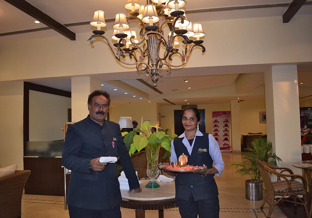 Nach diesem erlebnisreichen Tag, erreichten wir gegen 18 Uhr das Hotel „The Ashok“ in Hassan. Kurz vorher hatte Mr. Sing im Bus zwei Flaschen Rum (wer wollte mit Cola) und Knabbereien spendiert - sozusagen als „Abschiedsschluck“.