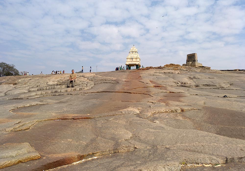 Unser Reiseleiter schlug vor, am Indragiri-Hügel im Ort Shravanabelagola anzuhalten. Dort befindet sich eines der wichtigsten Pilgerzentren des Jainismus in Indien. Die Mehrzahl der Gruppe wollte dieses Heiligtum sehen und so änderten wir die Reiseroute leicht ab.