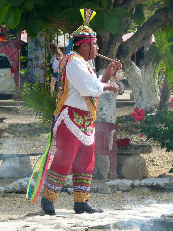 Nach dem Spaziergang war noch genügend Zeit, um vor dem Eingang der Anlage etwas zu trinken, im Starbucks Cafe eine Tasse von Mexiko zu kaufen und den kostümierten Tänzer und Souvenirhändlern zuzuschauen.
