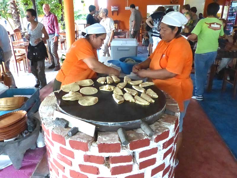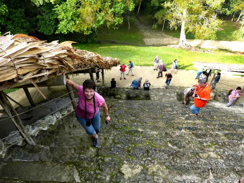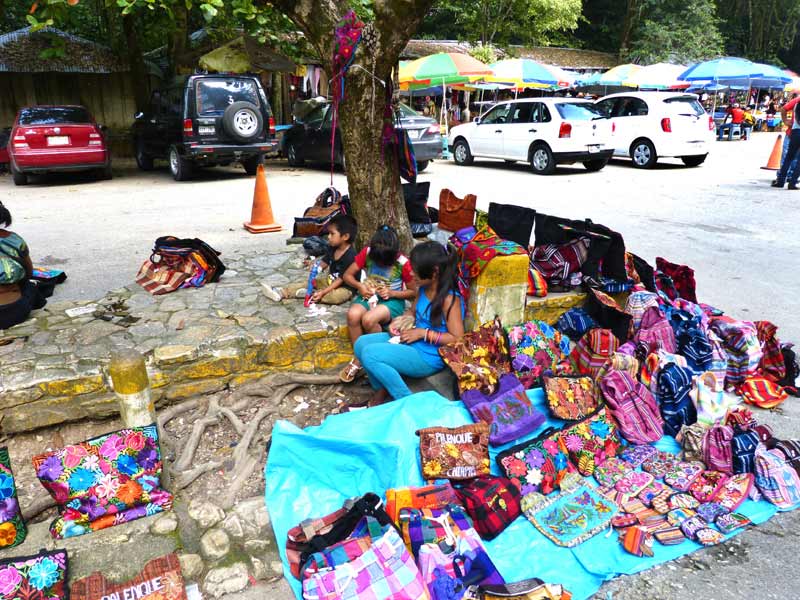 Nach der Ankunft scharten sich sofort Frauen mit bunten Taschen und anderen Souvenirs um uns, doch nach dem Kauf der Tickets durch Hilde wanderten wir zunächst zu den sehr gut erhaltenen Tempeln der Mayaanlage.