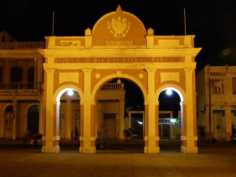 Unser Hotel war das "La Union" ein sehr schöner und gepflegter Bau aus dem Jahre 1869. Hier haben wir uns sehr Wohl gefühlt. Schade, dass es nur für eine Nacht war. Langsam brach schon die Dunkelheit herein und wir unternahmen noch einen Stadtbummel, um uns im nahen "Parque Jose Marti" unter anderem den bekannten Triumphbogen anzusehen und in einem kleinen Lokal etwas zu trinken.