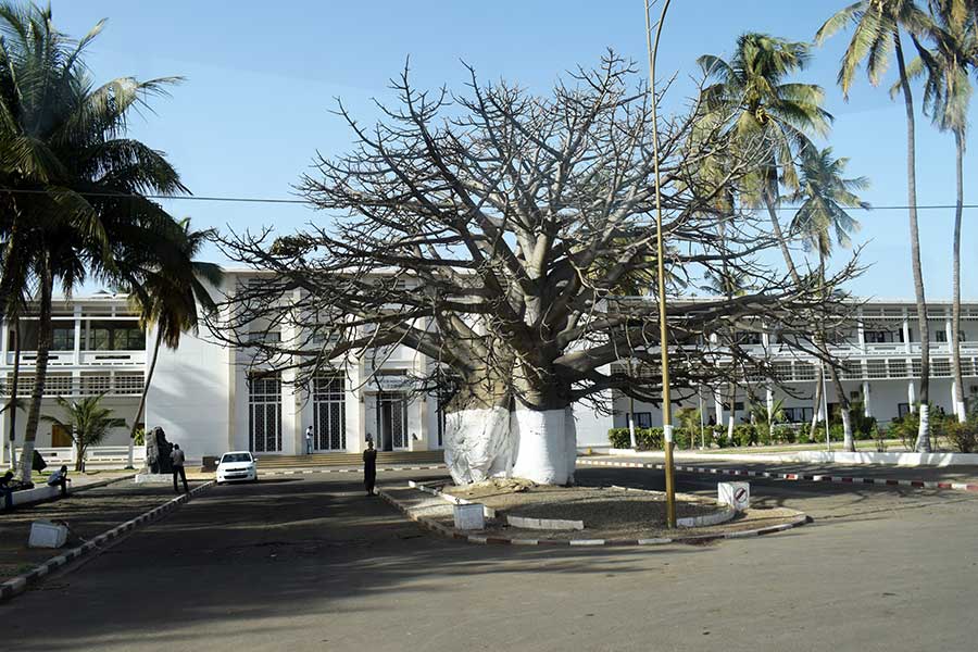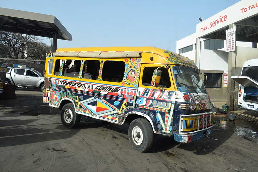 Nach der Landung um 21.45 Uhr auf dem 2017 neu eröffneten Aéroport International Blaise Diagne in Dakar und einer zügigen Einreisekontrolle und Gepäckabfertigung trafen wir in der Flughafenhalle auf die restlichen 13 Teilnehmer unserer Gruppe. Dort empfing uns Mamadou, der für die gesamte Rundreise unser Reiseleiter war, mit einem eher unauffälligen Pappschild, auf dem der Name des Reiseunternehmens stand.
