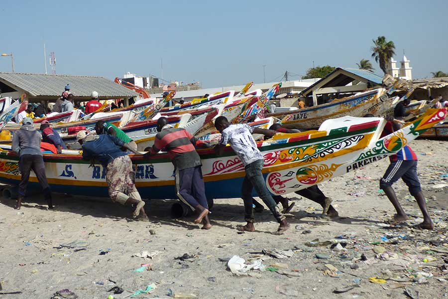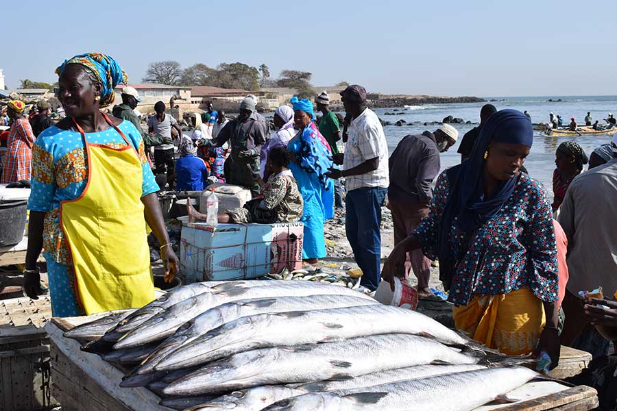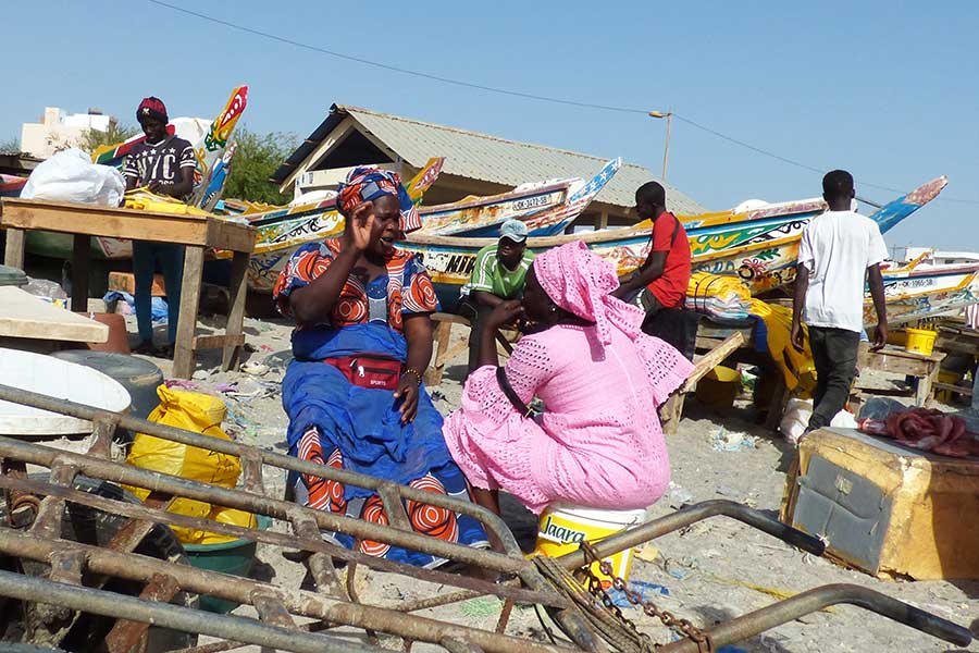 Mit der 15 Uhr-Fähre fuhren wir zurück und der Bus brachte uns zu einem Künstlerdorf, das aus vielen kleinen Läden mit typischen afrikanischen Souvenirs bestand. Hier konnten wir 45 Minuten shoppen gehen. Nach einer kurzen Visite und dem Entschluss, nichts zu kaufen, besuchten Monika und ich lieber den benachbarten Fischmarkt. Hier fanden wir es wesentlich interessanter und authentischer.