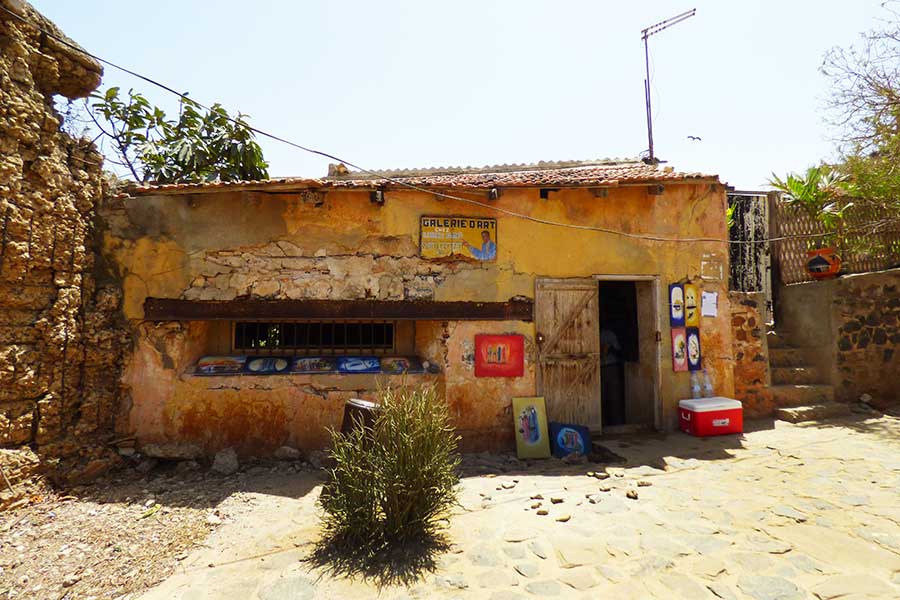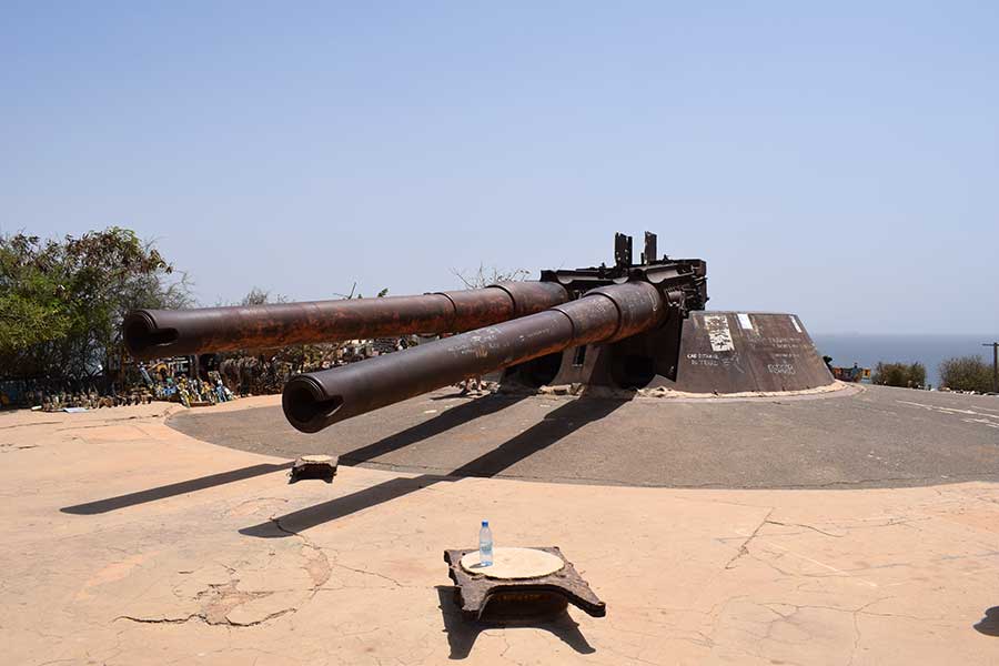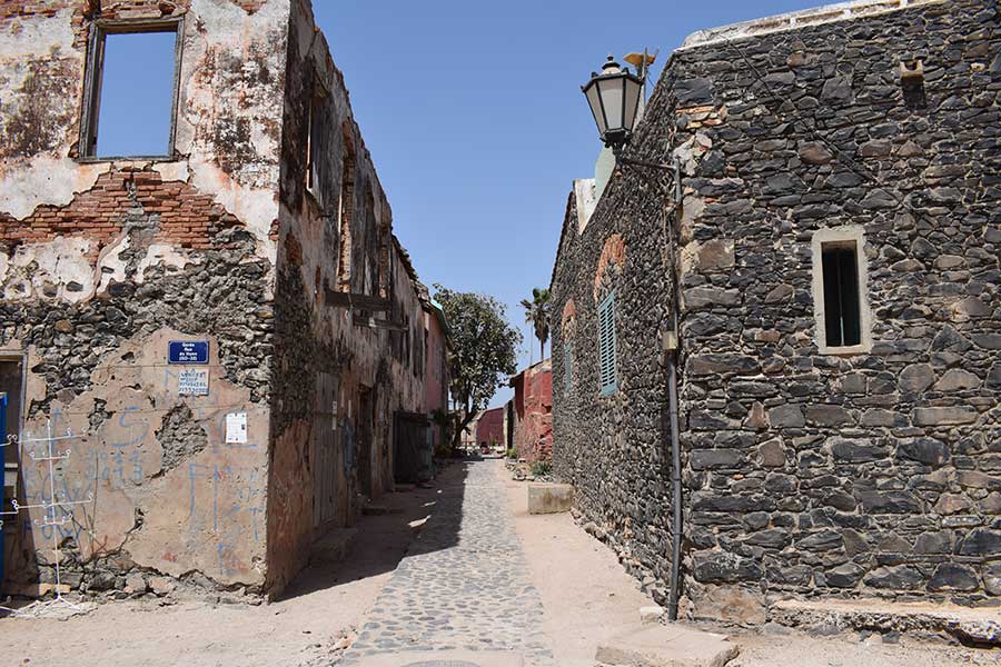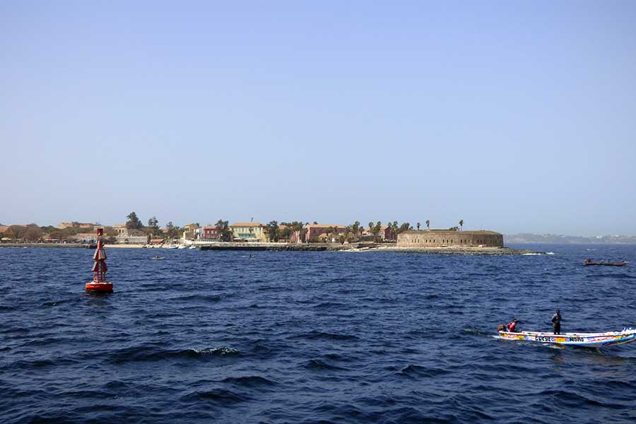 Aber weit gefehlt! Es wurden zuerst Schulklassen ohne Ende durch das Tor gelassen, und so mussten wir über eine Stunde warten, bis wir auf eine Fähre durften. Nach einer halben Stunde Fahrt erreichten wir endlich 11.30 Uhr die Anlagestelle der Insel. Dort besichtigten wir zuerst das Sklavenhaus und machten anschließend bei strahlendem Sonnenschein einen interessanten Spaziergang auf der Insel. Unterwegs machten wir in einem Restaurant die Mittagspause, wo wir beide einen Salat aßen.