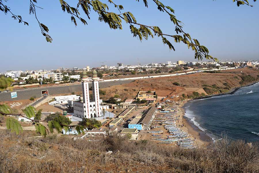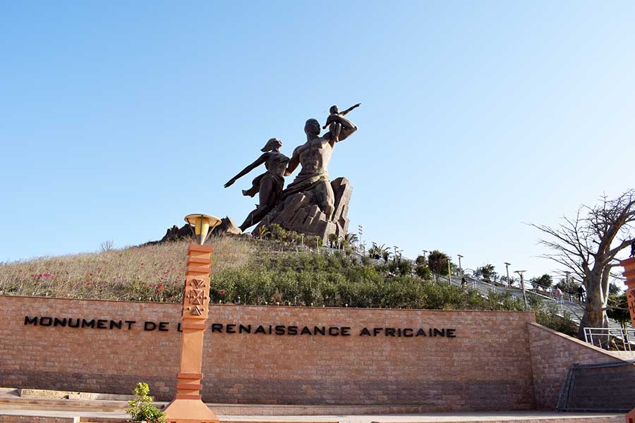 Gegen 17 Uhr schloss sich eine kleine Stadtrundfahrt durch Dakar an. Wir sahen unter anderem die Universität, den Leuchtturm sowie die große Moschee und machten einen 20 minütigen Stopp am 49 Meter hohen Denkmal der afrikanischen Wiedergeburt, das 2010 eingeweiht wurde.