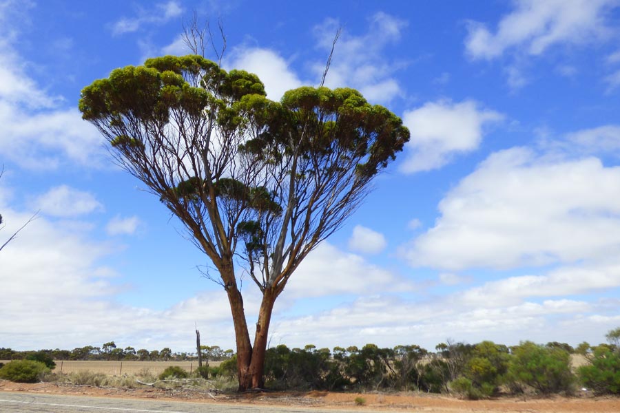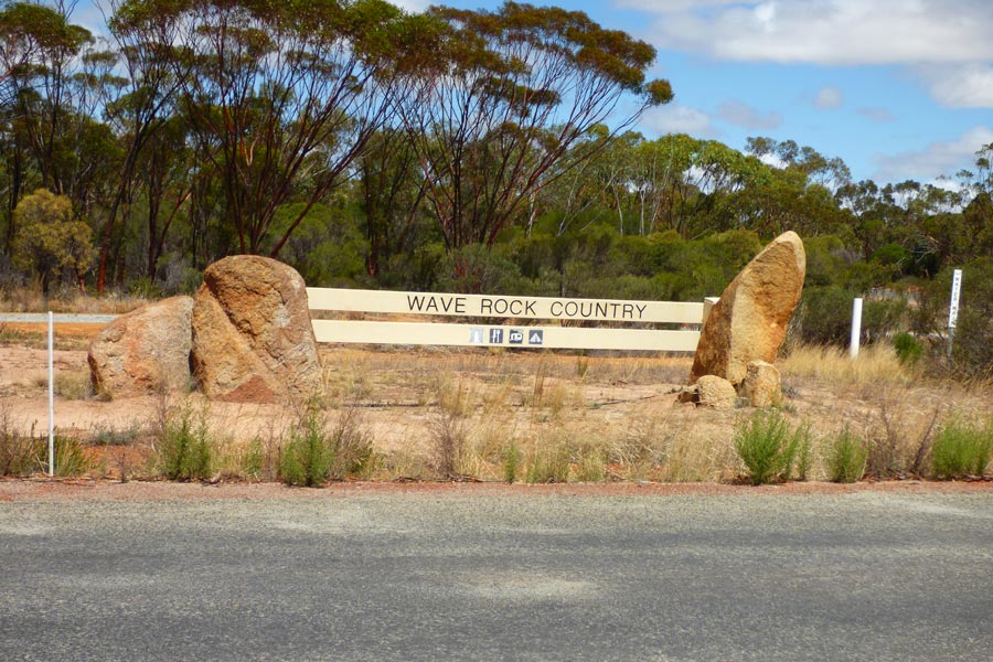 Nach einer angenehmen Nacht und dem kleinen Frühstück im Motelrestaurant, wo wir wieder nett bedient wurden, starteten wir 8 Uhr nach Hyden, um uns dort den berühmten Wave Rock anzusehen. Es war eine angenehme Strecke bei schönem Wetter. Unterwegs mussten wir in Brookton tanken und wechselten uns beim Fahren ab. Wir machten auch einige Stopps auf der Strecke, um uns die herrlichen Bäume zu betrachten.