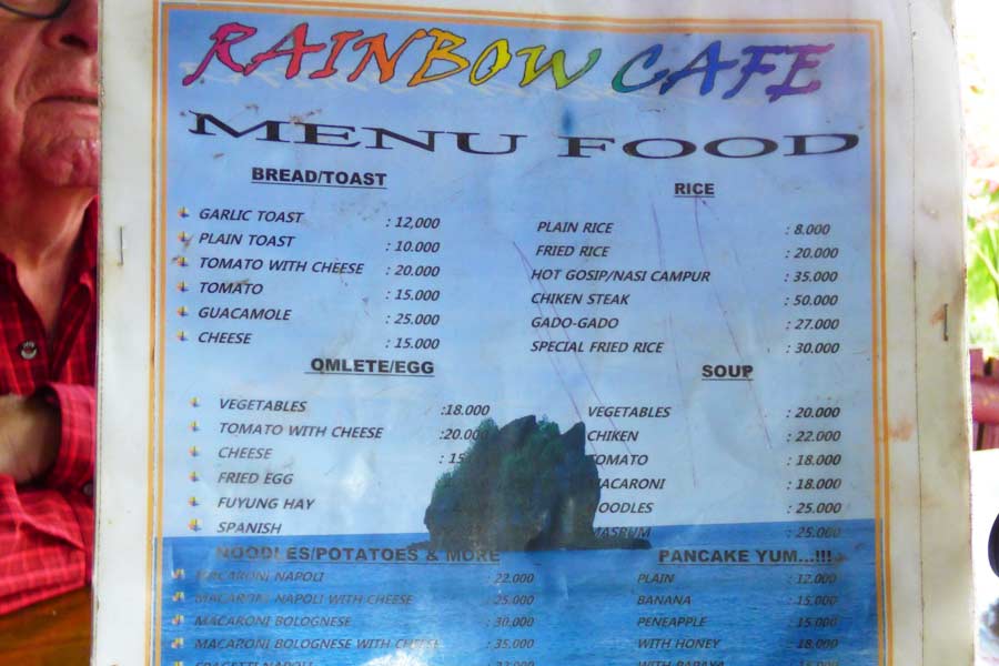 Ingo sammelte 15.000 Rupien pro Person für den morgigen Besuch des Vulkans ein und fragte ab, was wir am nächsten Morgen zum Frühstück essen wollten. Wir konnten wählen zwischen gebratenem Reis, Pancake, Omelett, Rührei oder Spiegelei.
