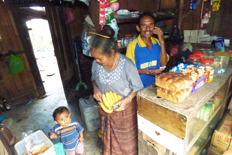 Um 11.30 Uhr machten wir in Mborong die Mittagspause. Wie so oft gab es Suppe mit Hühnerfleisch und gebratene Nudeln. Der frisch gepresste Papayasaft schmeckte vorzüglich.