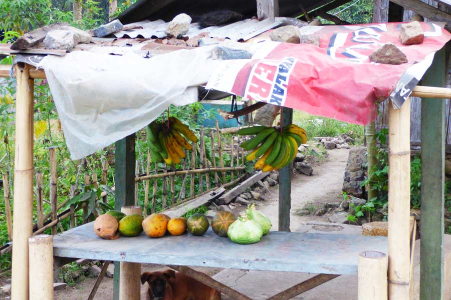 Zunächst besuchten wir am Straßenrand einige kleine Stände mit Obst und Gemüse und Monika verteilte an die freundlichen Marktfrauen Seife und andere kleine Geschenke.