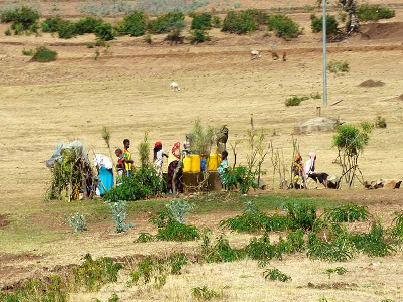 Wir sahen auch wenige Wasserstellen, die dicht umlagert waren und die typischen gelben Plastikkanister mit dem wertvollen Nass wurden selbst von Kindern bis zu 20 Kilometer weit nach Haus getragen. Da kann man schon ins Grübeln kommen...