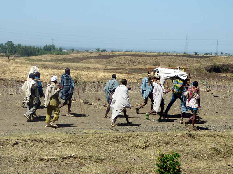 Unterwegs begegneten uns mehrmals kleine Gruppen von Menschen, die eine Trage mit einer kranken Person auf den Schultern trugen, um sie zur -zig Kilometer entfernten Krankenstation zu befördern - Wahnsinn.
