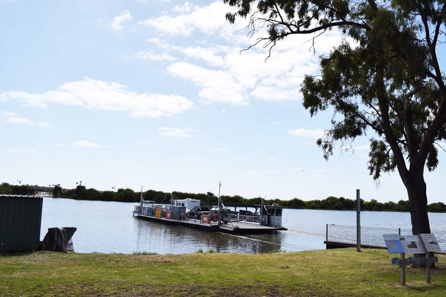 Wieder waren wir fast die Einzigen auf der Straße. In Meningi besuchten wir die Tankstelle und auf der Weiterfahrt standen wir plötzlich vor einer Schranke vor einem Fluss. Hier mussten wir uns mit einer Fähre kostenfrei über den Murray River nach Wellington übersetzen lassen. An dieser Stelle verkehrt seit 1839 die früheste und wichtigste Fährüberfahrt über diesen Fluss. In Strathalbyn machte wir kleinere Einkäufe bei IGA und Woolworth, bevor wir In Normanville am Strand auf ein Eis im Kiosk and Café hielten.