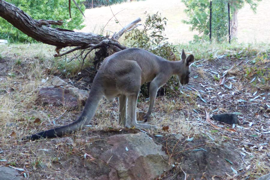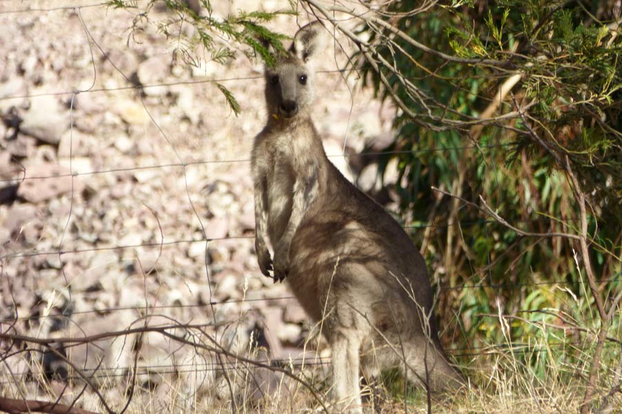Inzwischen war es 15 Uhr geworden und wir entschieden uns für ein kleines Picknick auf dem Parkplatz. Als Tisch diente der Kofferraum. Unterwegs kauften wir in einem Supermarkt noch Cola, Hähnchen, Joghurt und Aprikosen für den Abend. Unterwegs begegneten uns immer wieder Kängurus und wir mussten sehr aufpassen, um keines zu überfahren.