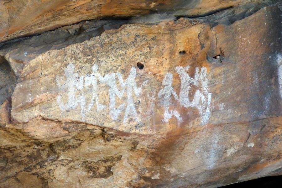 Danach fuhren wir weiter, um zwei Stätten mit Felszeichnungen der Ureinwohner aufzusuchen. Die Betonung liegt auf suchen. In den Grampians gibt es über 100 Stellen mit Felszeichnungen der Ureinwohner, von denen einige über 3.000 Jahre alt sind. Die von uns gewählten sollten relativ einfach zu erreichen sein.