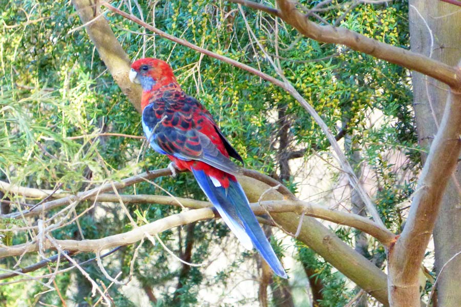 Der Bungalow war sehr geräumig und zweckmäßig eingerichtet. Zunächst hieß es erst mal Wäsche waschen. Die Laundry war 20 Meter neben uns und für vier Dollar nutzten wir die große Waschmaschine. Als Waschmittel hatten wir eine Tube Waschpaste im Gepäck. In der Zwischenzeit machten wir einen Spaziergang durch das Camp und sahen einige Kängurus und sehr viele verschiedene Papageien.