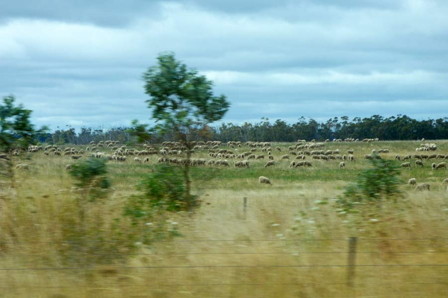 Kurz vor 14 Uhr begann dann die Weiterfahrt nach Kingston, die nur 15.30 Uhr von einer kurzen Rast unterbrochen wurde. Die Fahrt mit erlaubten 110 km/h auf dem Highway durch die recht eintönige flache Landschaft mit tausenden Schafen war recht langweilig.