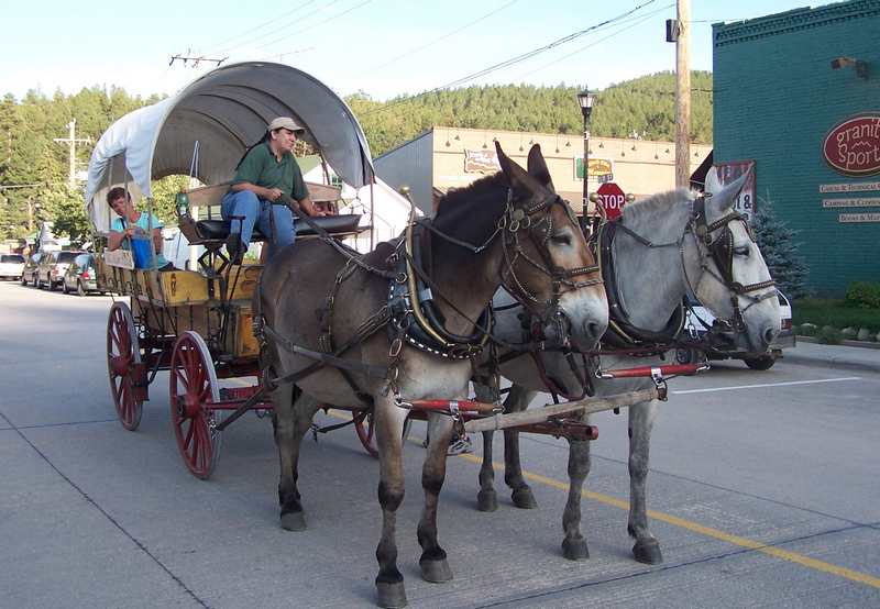 Wir entschieden uns spontan in Hill City zu übernachten und checkten gegen 16.00 Uhr im "Super 8-Motel" ein. Nach einem Stadtbummel gab es 18.00 Uhr Abendessen im Desperados und danach ging es mit einer Pferdekutsche kreuz und quer durch diesen kleinen beschaulichen Wester-Ort. Überall deuteten Plakate auf das vor wenigen Tagen in Sturgis stattgefundene Motorrad-Treffen hin und soooo viele Harleys auf einen Fleck habe ich noch nie gesehen.