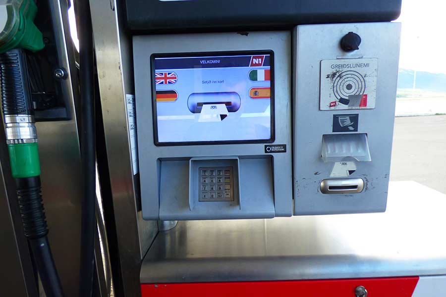 Am nächsten Morgen zeigte sich zum Glück wieder ein blauer Himmel und die Natur sah gleich ganz anders aus. Nach dem guten Frühstücksbuffet im Hotel machten wir uns kurz nach 8 Uhr auf den Weg. Im Ort Akureyri füllten wir den Tank für die Weiterreise, denn es lagen heute immerhin über 400 Kilometer bis nach Reikjavik vor uns. Das Tanken mit der Visacard klappte Dank des auszuwählenden deutschsprachigen Menüs wieder reibungslos.
