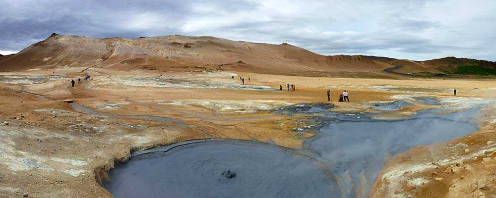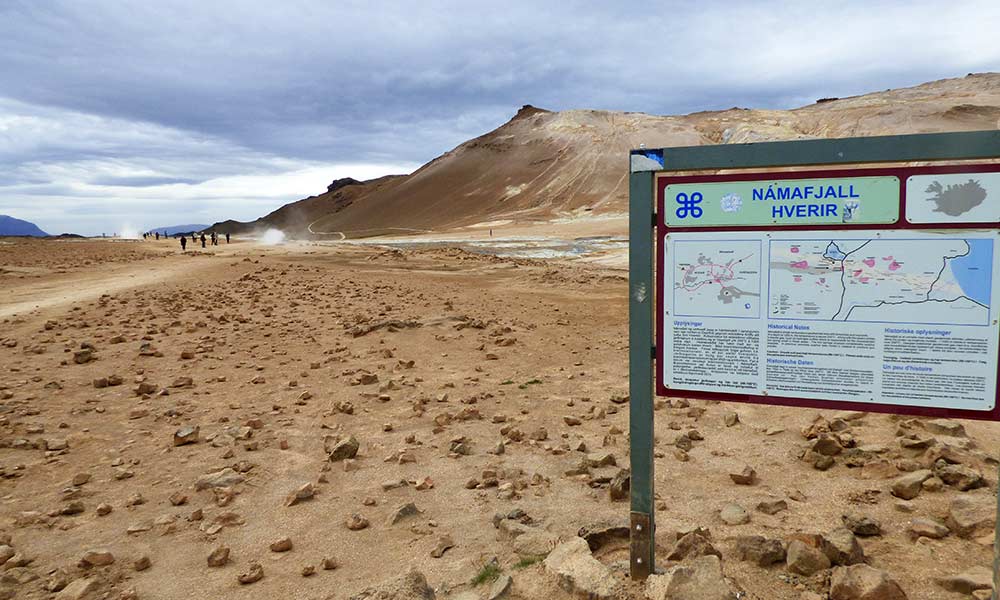 Nach 40 Minuten Fahrt - inzwischen war der Himmel bewölkt - kamen wir am aktiven Vulkan Namafjall an.