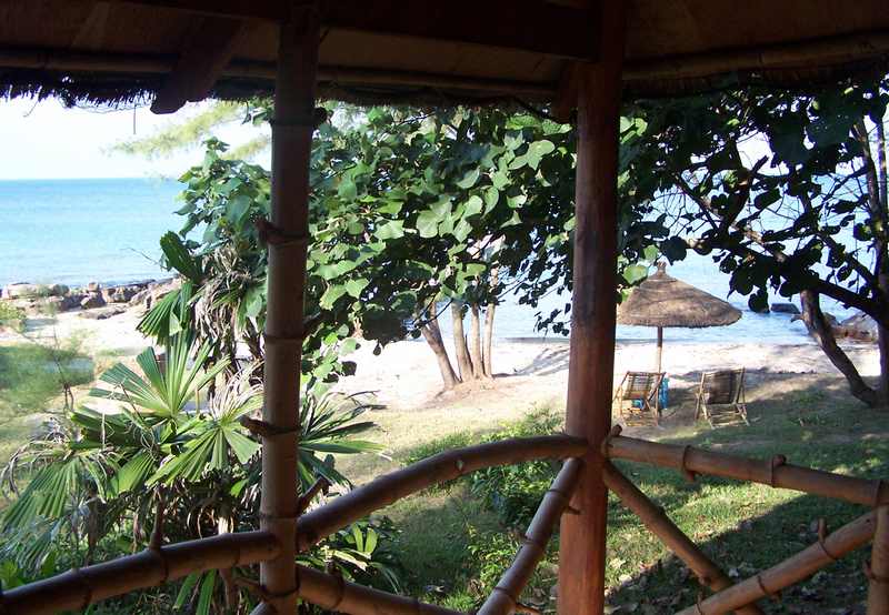 Alles war aus Bambus oder anderem Holz gefertigt, das Dach ringsherum offen und die scheibenlosen Fenster hatten nur Läden aus Holzlamellen. Ein Moskitonetz konnte nachts über das große Doppelbett gezogen werden und das Bad war gefliest und hatte WC und Dusche.