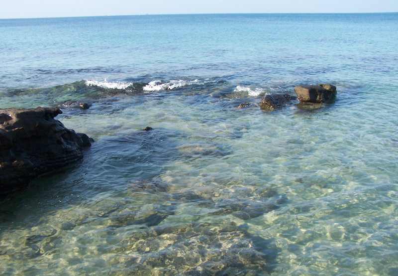 Da es inzwischen Mittag geworden war, probierten gleich das in den Reiseführern gelobte gute Essen aus und konnten auch an den Folgetagen bestätigen, dass die Küche dort ausgezeichnet und preiswert ist. Anschließend ging es zum schönen feinsandigen Naturstrand, wo wir im warmen, glasklaren Wasser den Staub der Mopedfahrt abspülen konnten.