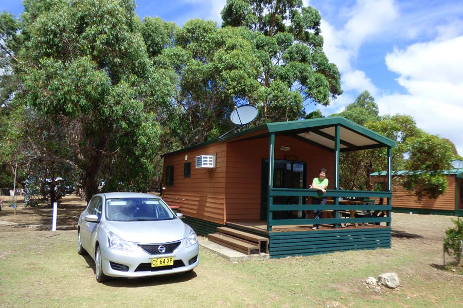 Wir wählten die Südroute, da Monika den Sealbay besuchen wollte. In der sehr schönen Wilsonbay machten wir einen Strandspaziergang. Eigentlich wollten wir noch Tanken fahren, aber die einzige Tankstelle auf der Strecke hatte leider geschlossen. Um 13.45 Uhr erreichten wir unsere Unterkunft, das Western KI CP & Wildlife Resort. Dort bezogen wir nach kurzem Check in unseren sehr schönen Bungalow.