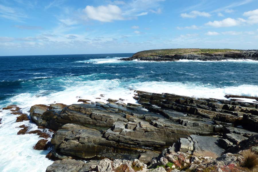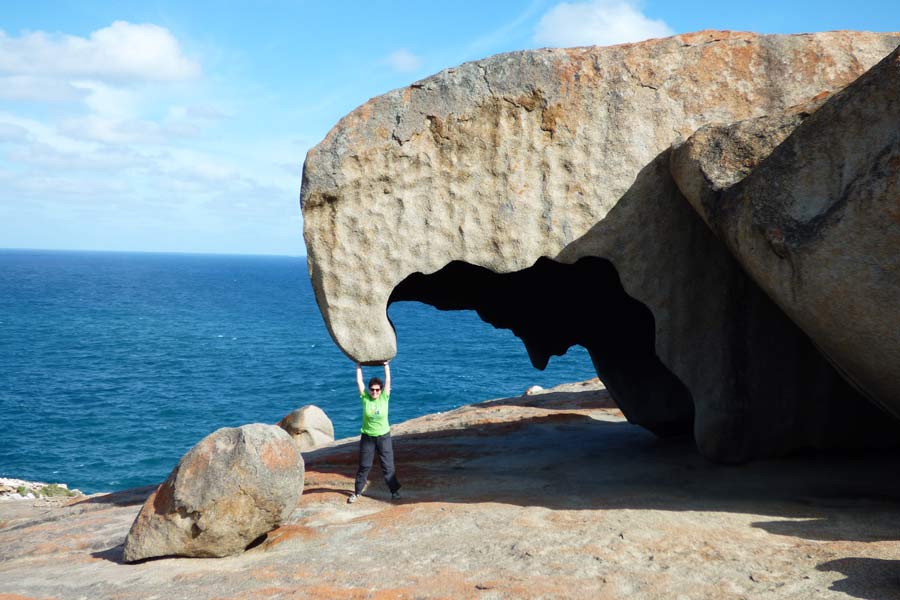 Absoluter Höhepunkt waren für uns aber die Remarkable Rocks. Diese wirklich bemerkenswerten riesigen Granitfelsen befinden sich auf einer Lavaplattform 200 Meter über dem Meer. Durch Millionen von Jahren wurden sie vom Wetter zu bizarren Gebilden geformt und sind nun ein Eldorado für Touristen und Fotografen. Die sehr fotogenen Steine hielten uns eine Dreiviertelstunde in ihrem Bann.