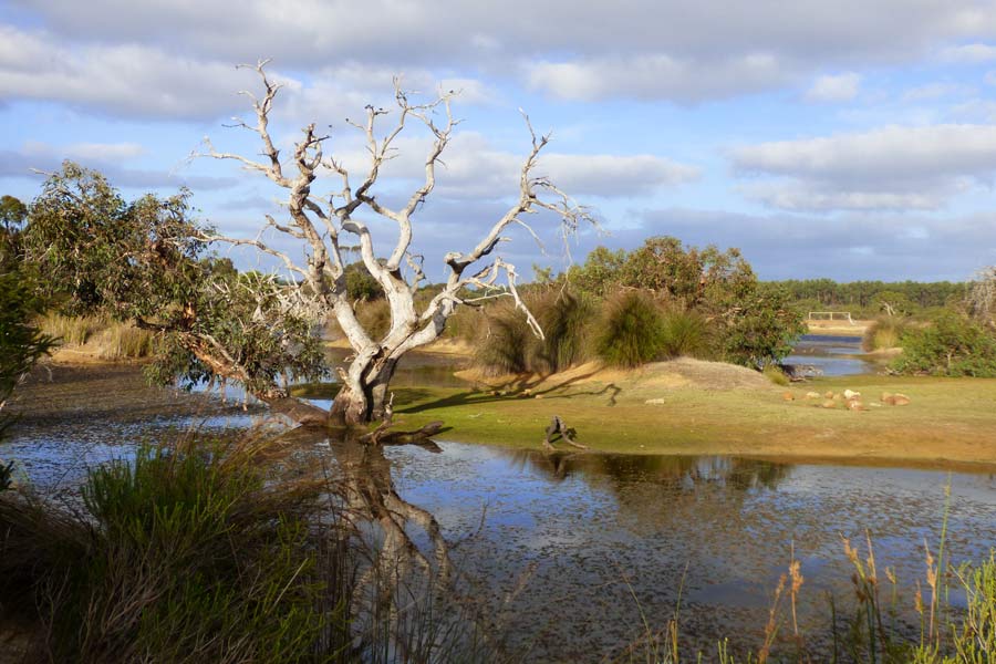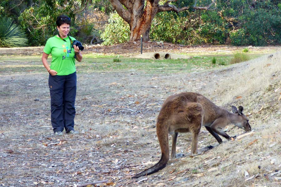 Im Resort angekommen, unternahmen wir eine kleine Wanderung zur Lagune und entdeckten dort einige Kängurus und Wallabys beim Grasen. Anschließend erspähten wir auch noch einen Koala auf einem Baum, bevor wir 20.15 Uhr den Tisch deckten und nach dem Essen den wunderschönen Tag bei einer Flasche Wein ausklingen ließen.