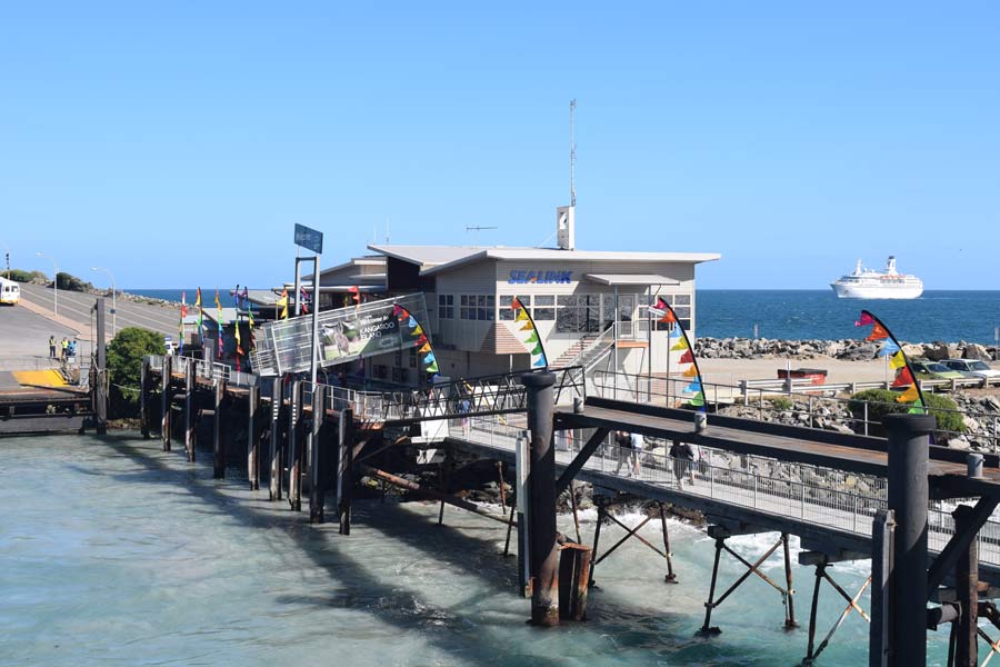 In der Fährstation erhielten wir unsere Tickets und konnten 8.30 Uhr an Bord gehen. Dort nahmen wir in bequemen Sesseln hinter großen Fenstern am Bug Platz. 9.00 Uhr legte die Fähre ab und nach ziemlichem Seegang kamen wir 50 Minuten später in Penneshaw an, wo schon eine junge Frau mit einem Schild mit der Aufschrift "Hertz" stand.