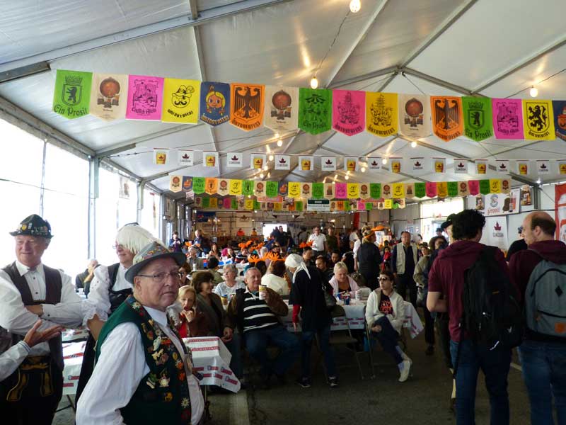 Zuerst besuchten wir das Festzelt, in der eine Trachtenkappelle deutsche Trinklieder spielte und auch sonst ging es ziemlich deutsch zu. Überall gab es Lederhosen, Hüte und Anstecker zu kaufen und immer wenn wir uns als Deutsche zu erkennen gaben, freute man sich und erzählte, welcher Vorfahr aus Deutschland stammte. Wir trafen auch viele Deutsche, die erst in den letzten 50 Jahren nach Kanada ausgewandert sind.