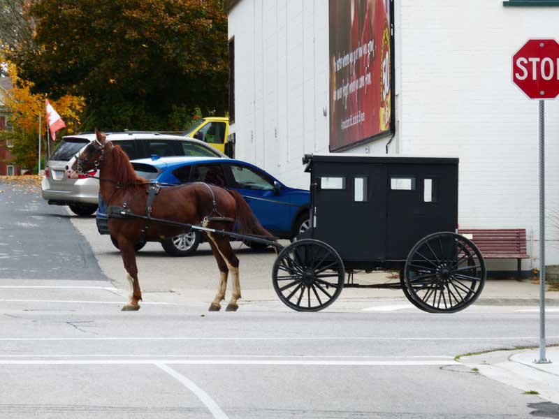Da wir erst am Nachmittag zum Airport mussten, hatten wir den gesamten Vormittag Zeit, und einige Mennoniten-Siedlungen in der Umgebung anzusehen. Als ersten führen wir ins 10 km nördlich von Kitchener gelegene St. Jocobs, früher Jakobsstettel genannt. Dort gibt es viele historische Gebäude, die teilweise noch genutzt werden. Wir besuchten das in der alten Mühle gelegene interessante Ahornsirup-Museum und ein Technikmuseum, in dem man sehr viele, liebevoll zusammengetragene, alte Werkzeuge und Apparate findet.