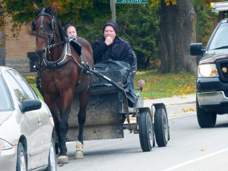 Oft begegneten wir Pferdekutschen der Mennoniten und an den Farmen sahen wir Verkaufsstände mit Ahornsirup, Kartoffeln oder Eiern und einer kleinen Schachtel für das Geld. Hier vertraut man darauf, dass das passende Geld hinterlassen wird.