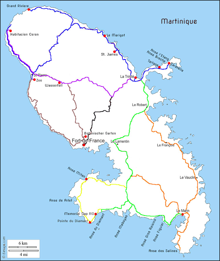 Wir entschieden uns für 16 Tage in der ersten Märzhälfte, fanden einen Direktflug von Frankfurt nach Martinique, wählten als Nachbarinsel St. Lucia und buchten für jede Insel einen Mietwagen sowie Unterkünfte, die unseren Vorstellungen entsprachen. Das „Inselhüpfen“ nach einer Woche von Martinique nach St. Lucia erfolgte mit der Schnellfähre, das „Rückhüpfen“ mit dem Flugzeug.