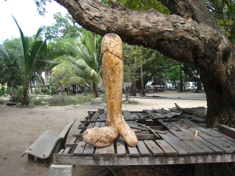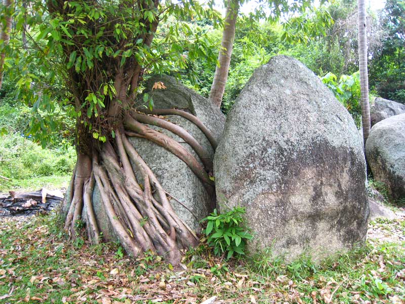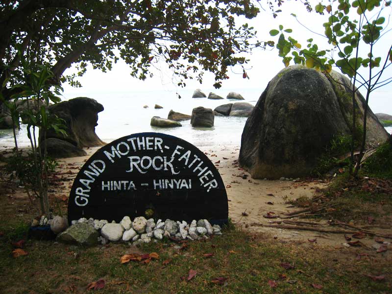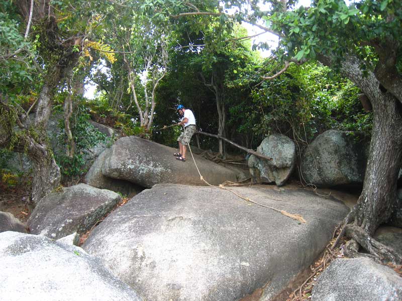Am nächsten Morgen mieteten wir uns wieder ein Moped um uns die Sehenswürdigkeiten anzusehen, die wir schon zu Hause ausgesucht hatten. Wir suchten zuerst den Großmutter- & Großvater-Felsen, den wir auch nach einer kurzen Strecke fanden. Hier mussten wir an einem langen Seil zum Strand hinabklettern - aber die Felsformen am Strand waren schon lustig. Danach suchten wir die drei großen Palmen, die wir aber nicht fanden. Später erfuhren wir, dass die Palmen mittlerweile umgefallen und beseitigt sind. Dazu kam, dass die Beschilderung nur auf Thailändisch war.