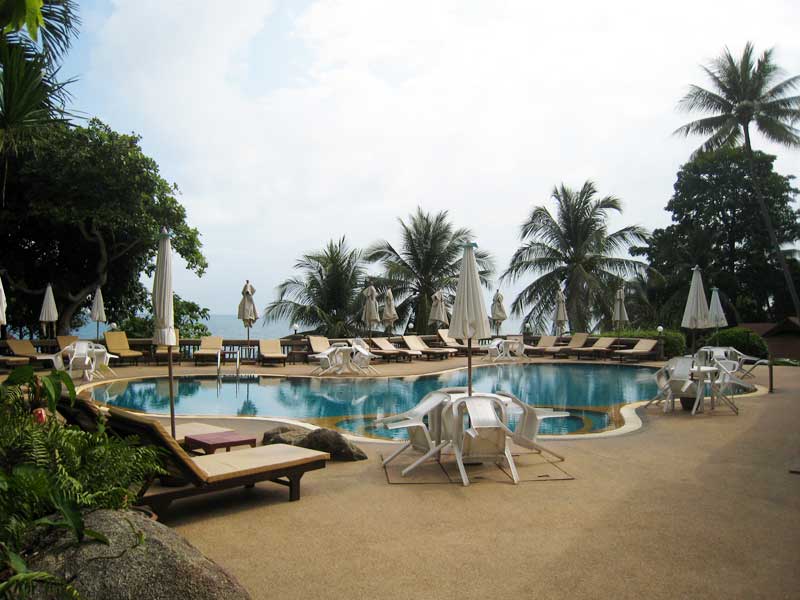 Am Mittag des 13. Januar kamen wir auf Koh Samui an und nahmen ein Taxi in unser von zu Hause gebuchtes Hotel "Pinnacle Coco Palm Resort" am Maenam Beach im Norden der Insel. Es war eine sehr schöne Anlage mit einem schönen Pool, auf den wir uns nach der bisherigen langen Rundreise schon sehr gefreut hatten. Leider war es sehr windig und bewölkt, so dass ein Baden im Meer ausfiel und wir uns die Umgebung des Hotels ansahen und am Strand spazierten.
