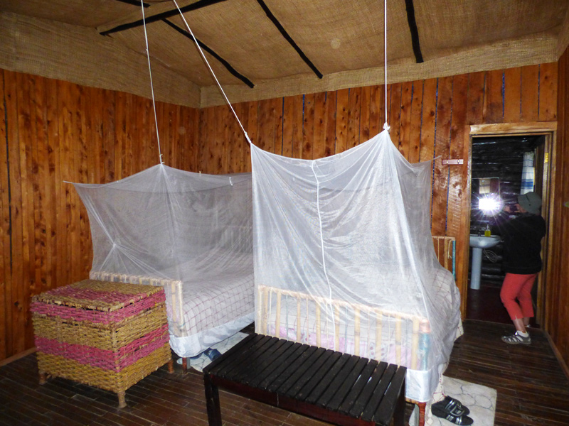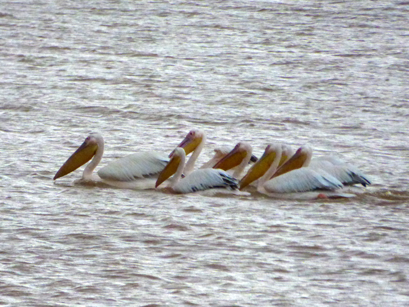 Monika und ich hatten großen Glück mit unserem Bungalow, denn er war der einzige direkt am See und wir konnten direkt von der Terrasse die Flusspferde beobachten und einer Gruppe Pelikane beim Fischfang beobachten.