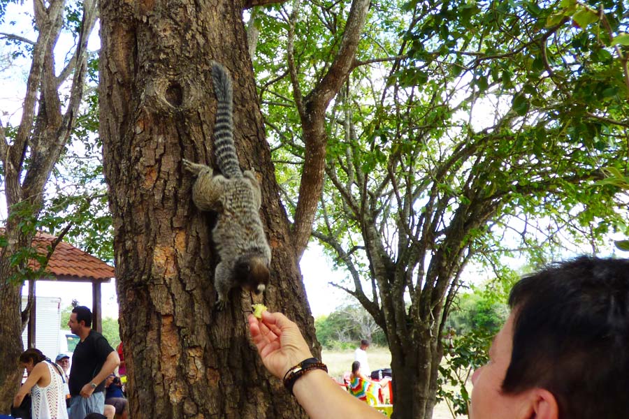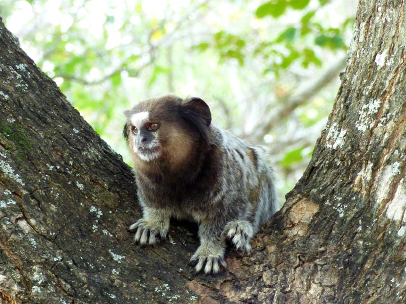 Nach dem Mittagessen in dem Restaurant an der Höhle, wo uns ein sehr gutes brasilianisches Buffet erwartete, fuhren wir zur Gruta Azul. Wir verzichteten allerdings darauf, den 16 m tiefen, mit kristallklarem Wasser gefüllte Höhlensee per Boot oder Schnorcheln zu erkunden, sondern genossen dafür lieber ein erfrischendes Bad im glasklaren Wasser am Strand der angeschlossenen Lagune, wo uns einige possierliche Pinselohräffchen besuchten.