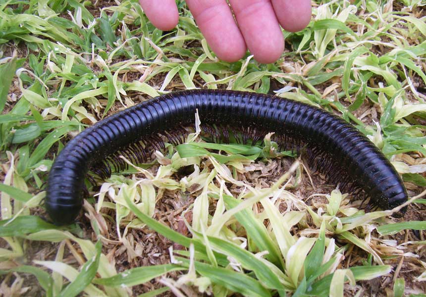 Um 5.30 Uhr Wecken, Waschen, dann 6.30 Uhr Frühstück (diesmal mit gekochtem Sonntags-Ei). Danach noch ein kurzer Rundgang zu den Gehegen der Wildtiere. Durch den nächtlichen Regen krochen überall schwarze Riesen-Hundertfüßler - sogenannte Skolopender - umher, die eine zum Teil erschreckende Größe hatten. Diese aggressiven Räuber fressen so ziemlich alles, was sie überwältigen können – Insekten und sogar Mäuse. Im Gepardengehege sahen wir ein Prachtexemplar mit dem Durchmesser eines mittleren Gartenschlauches und ca. 30 Zentimeter Länge.
