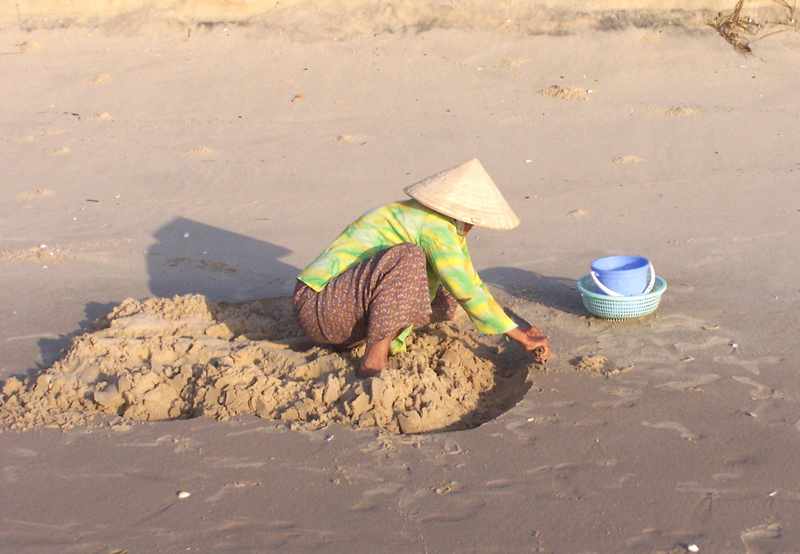 Gegen Mittag erreichten wir Mui Ne und wurden trotz Monikas Bitte beim Fahrer nicht vor unserem gebuchten Ressort abgesetzt. Der Busfahrer düste vorbei und gab uns zu verstehen, dass er erst an der Endstelle wendet uns auf der Rückfahrt absetzen würde.