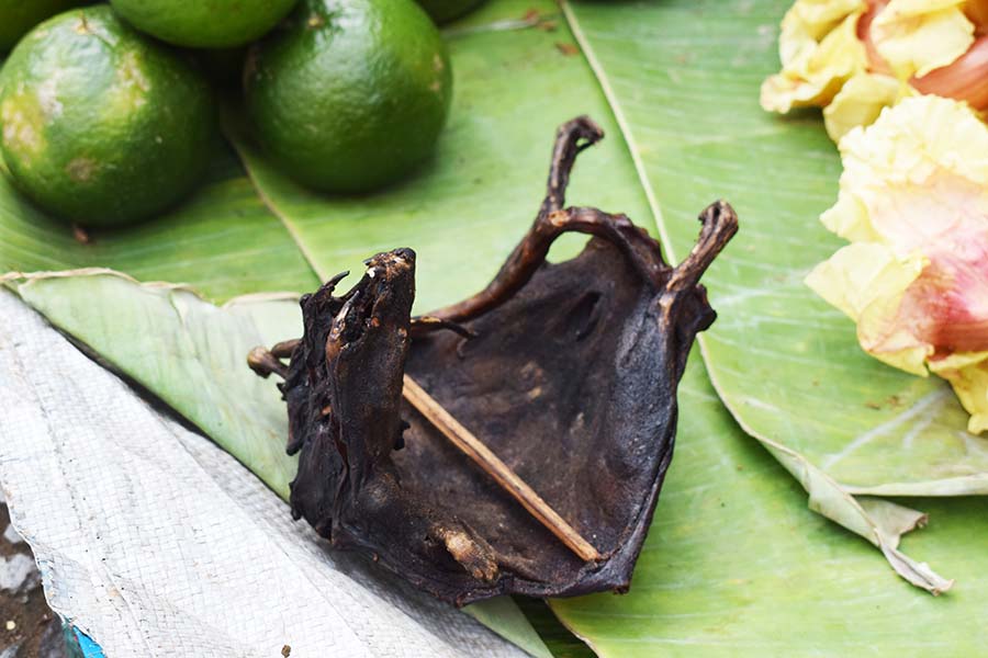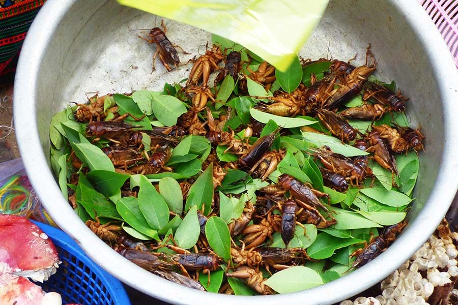 Angeboten wurden hier viele exotische Früchte, lebende Käfer, gegrillte Frösche und Ratten, Bienenwaben und Raupen.