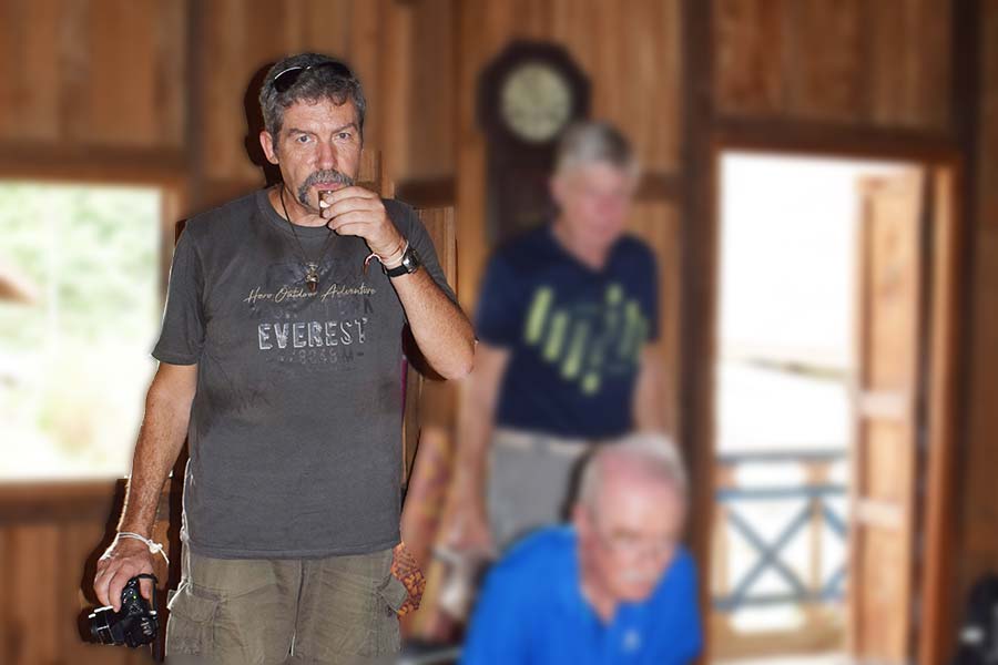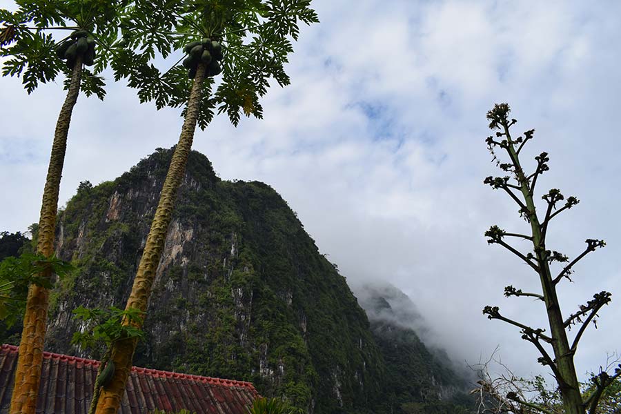 Eine Wanderung zur Thamkang-Höhle wurde von vielen bunten Schmetterlingen begleitet. Zum ersten Mal konnten wir auch einige Vögel sehen, die sonst meist gefangen und verspeist werden. Auch eine Gottesanbeterin kreuzte unseren Weg.
