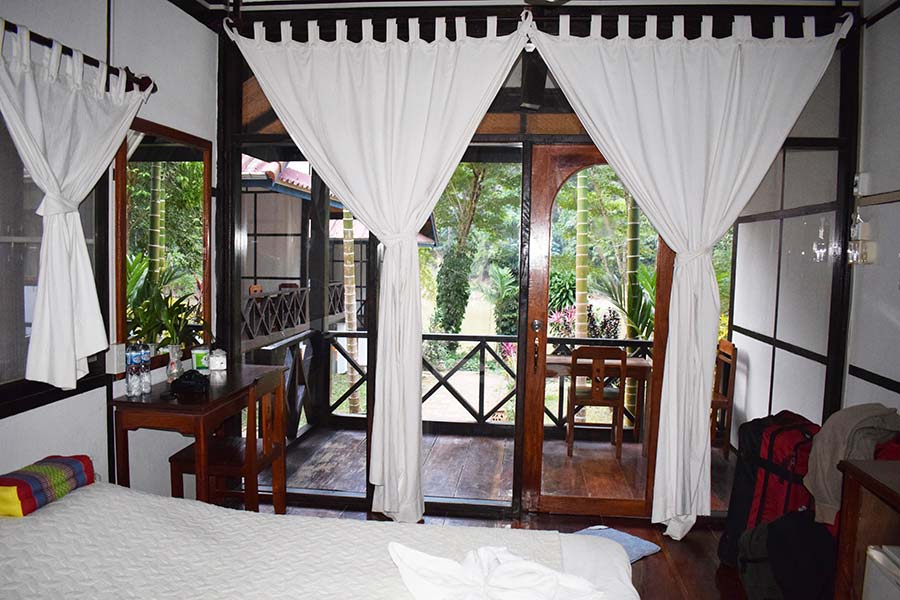 Am späten Nachmittag erreichten wir unser Resort „Pha Xang“. Es ist eine sehr schöne Anlage aus Bungalows, die inmitten eines exotischen Gartens direkt am Nam Ou Fluss liegt.