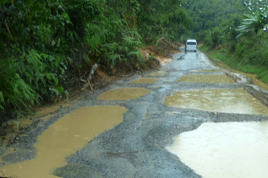 Nach dem Frühstück fuhren wir um 9.00 Uhr mit dem Bus über abenteuerliche Straßen zurück in Richtung Luang Prabang.
