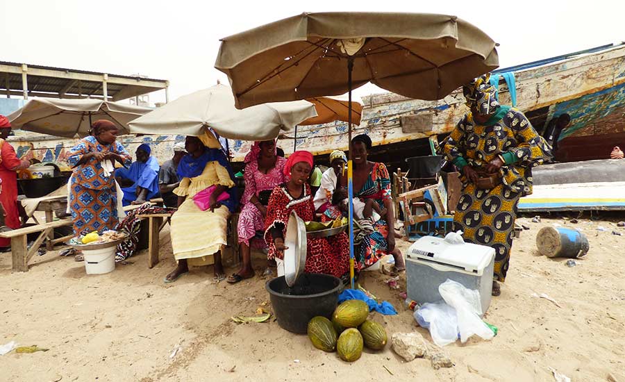 Nun fuhren wir weiter nach Mbour, um uns den dortigen Fischmarkt anzusehen. Am Ende des 19. Jahrhunderts wurde bei Mbour von den Franzosen eine Militärbasis errichtet. Seitdem entwickelte der Ort zu einem der größten Fischumschlagplätze in Westafrika.