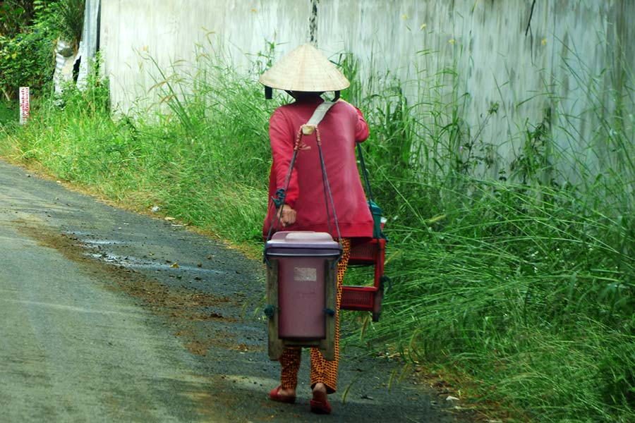 Der Ziegelstein-Stupa aus dem 16. Jahrhundert gehört zu den wenigen historischen Gebäuden der Stadt, welche die Bombenangriffe im Vietnamkrieg überlebt haben. Hier trafen wir auf einen Mann, der nach Wurzeln für seine Schwiegertochter suchte, welche mit sieben weiteren Zutaten bei ihr die Milchbildung für das Neugeboreren anregen sollten.