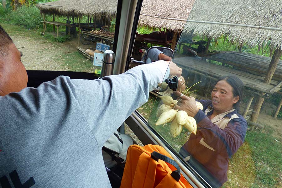 Um 11.30 Uhr stoppten wir an der Raststätte "Num Phoang" um uns einige Kekse und Getränke zu kaufen, denn die Mittagpause verzögerte sich heute etwas.