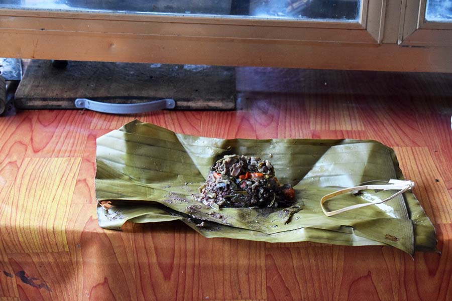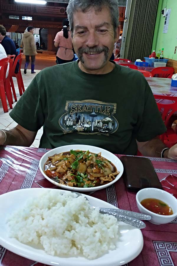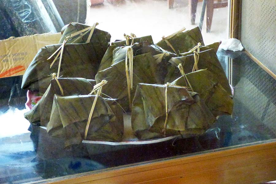 Unser Reiseleiter wollte uns für Rattenragout interessieren; wir lehnten jedoch dankend ab, denn es lag eingewickelt in Bananenblätter den ganzen Tag ungekühlt in einem Glasschrank. Das wollten wir unseren Mägen nun wirklich nicht antun. Gekühlt wäre es eine Überlegung wert gewesen.