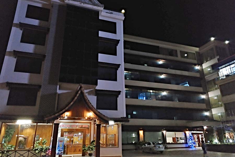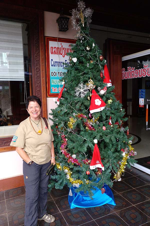 Um 19 Uhr waren wir endlich am Ziel, dem Hotel „Anoulak Khen Lao“ in Phonsavan, wo uns am Eingang ein Weihnachtsbaum begrüßte. Nach dem Check-In in ein schönes Zimmer bummelten wir zum Restaurant "Simmaly" und bestellten ein reichliches und sehr leckeres Abendessen. Den Ingwertee gab es gratis dazu.